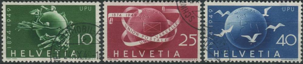 1949, Švýcarsko, 0522/0524, 75 let Světové poštovní unie (UPU) ⊙