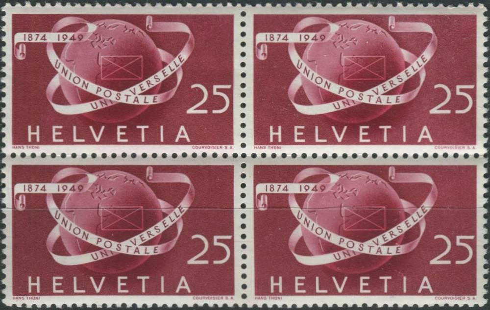 1949, Švýcarsko, 0523, 75 let Světové poštovní unie (UPU): Zeměkoule se stuhou ∗∗ ⊞