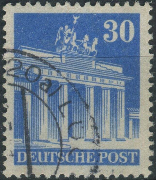 1950, Americká a Britská okupační zóna, 089eg, Výplatní známka: Stavby - Braniborská brána, Berlín ⊙