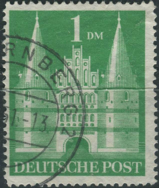 1950, Americká a Britská okupační zóna, 097eg, Výplatní známka: Stavby - Holstentor, Lübeck ⊙