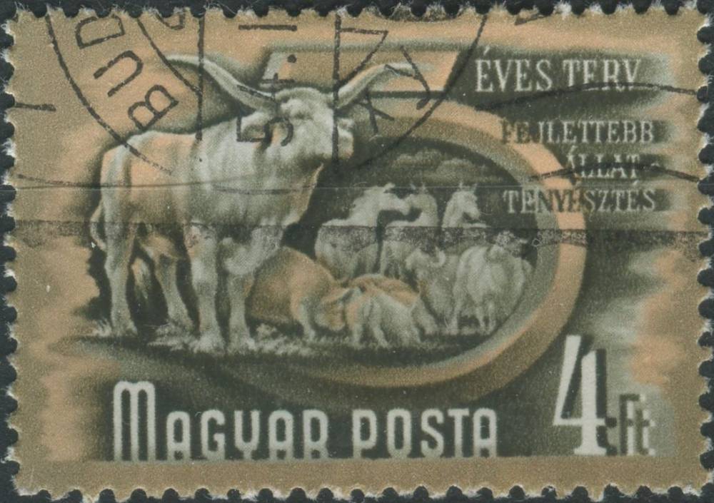 1950, Maďarsko, 1080, Výplatní známka: Pětiletý plán - Chov dobytka ⊙