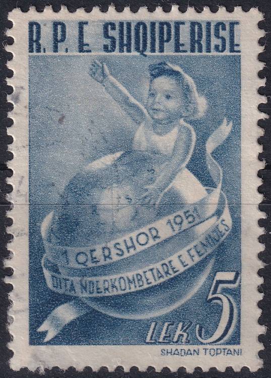 1951, Albánie, 0513, Mezinárodní den dětí: Dítě a zeměkoule ⊙