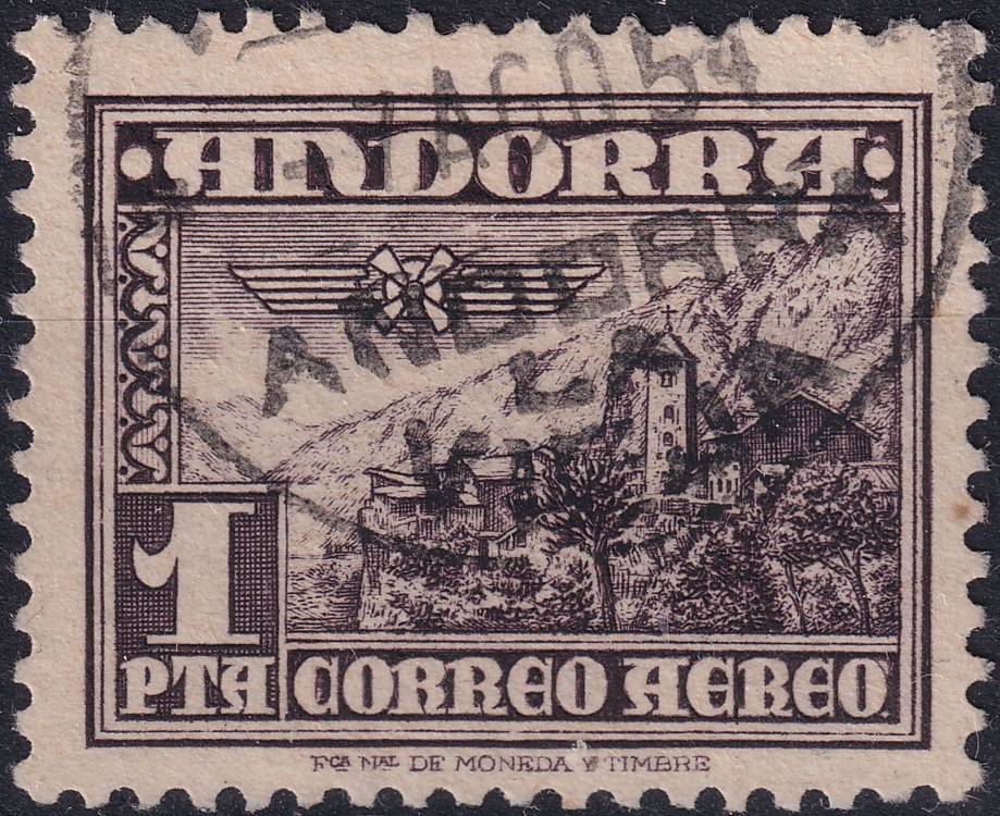1951, Andorra (Španělská pošta), 0058, Výplatní a letecká známka: Národní symboly - Andorra la Vella ⊙