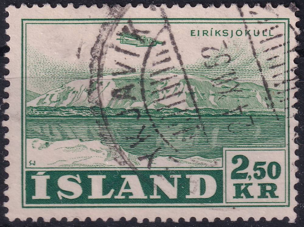 1952, Island, 0279, Letecká známka: Letadlo nad krajinou - Letadlo nad Eiriksjökull ⊙