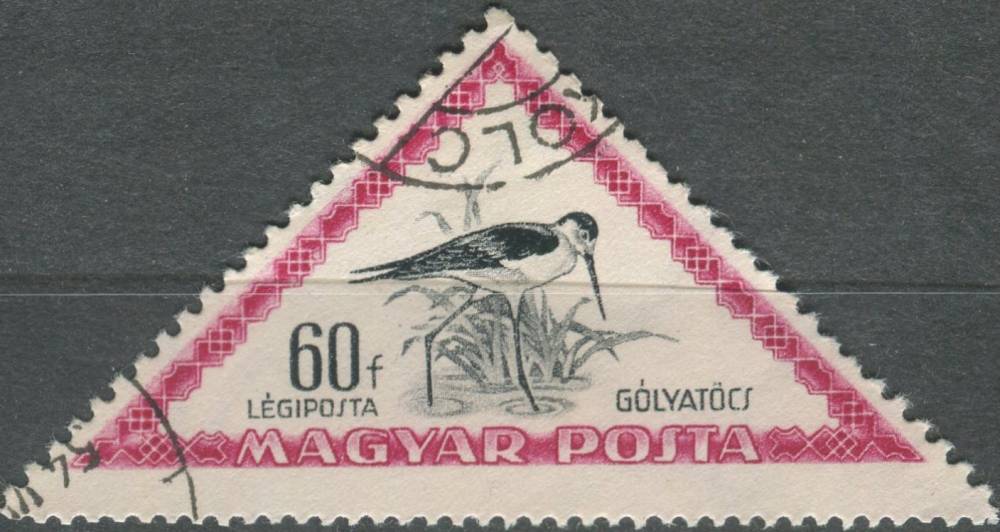1952, Maďarsko, 1234, Letecká známka: Domácí ptactvo - Himantopus himantopus ⊙