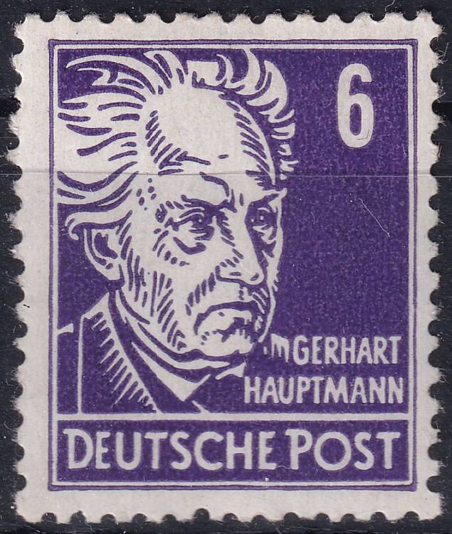 1952, NDR, 0328vbXI, Výplatní známka: Osobnosti politiky, umění a vědy - Gerhart Hauptmann, spisovatel, dramatik, nositel Nobelovy ceny ✶✶