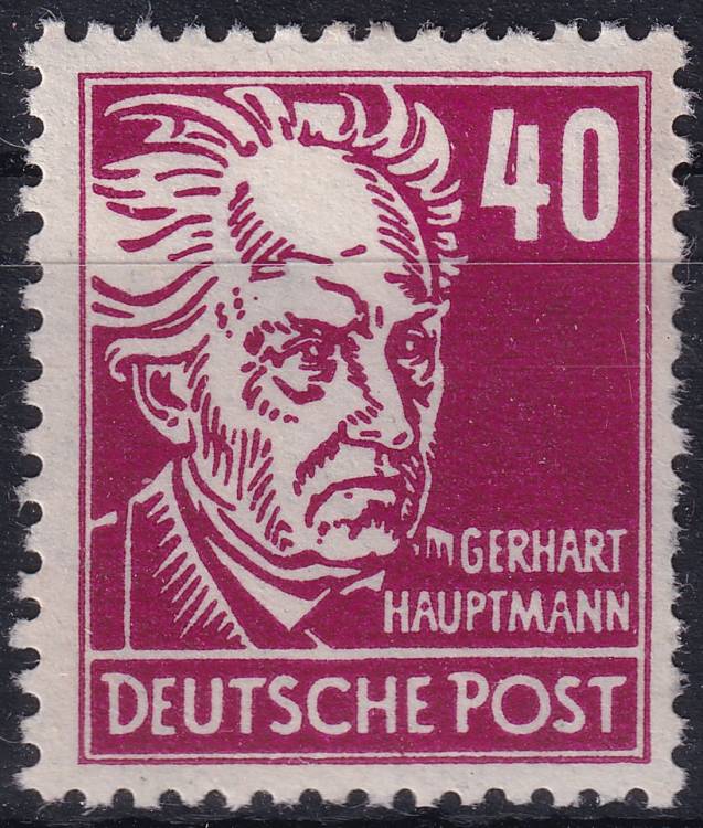 1952, NDR, 0336vaXI, Výplatní známka: Osobnosti politiky, umění a vědy - Gerhart Hauptmann, spisovatel, dramatik, nositel Nobelovy ceny ✶