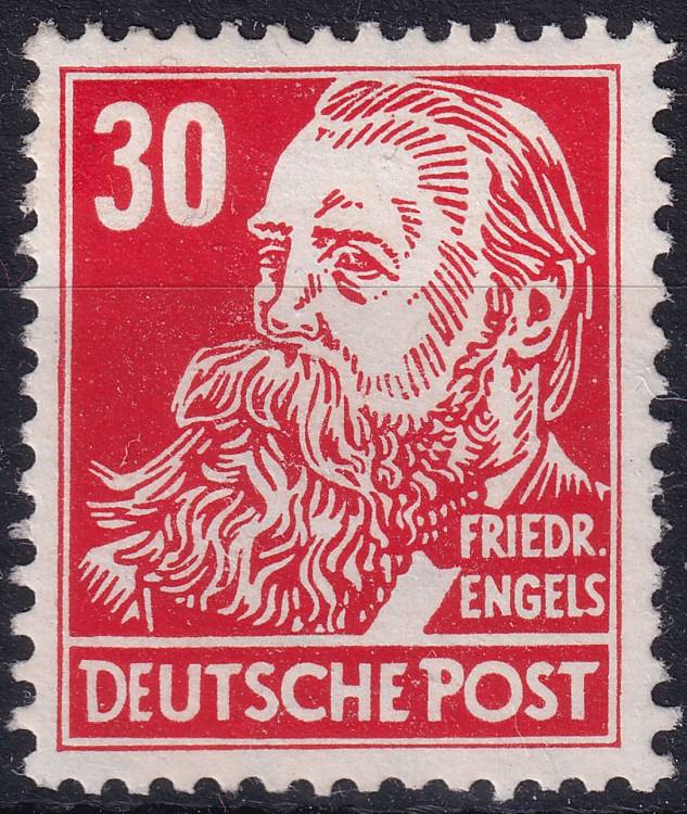 1952, NDR, 0335vbXI, Výplatní známka: Osobnosti politiky, umění a vědy - Friedrich Engels, publicista, socialista ✶