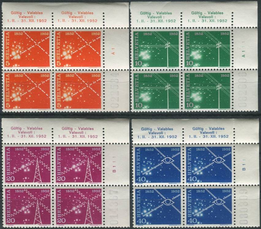 1952, Švýcarsko, 0566/0569DČč, 100 let zpravodajství pomocí elektřiny ve Švýcarsku ∗∗ ⊞ P H