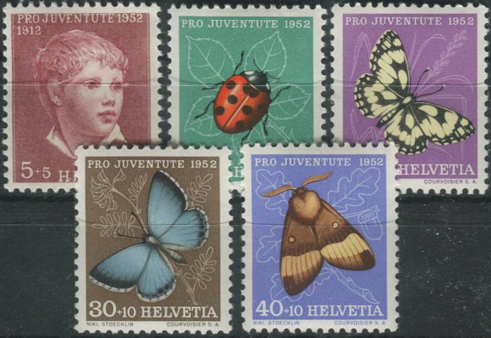 1952, Švýcarsko, 0575/0579, "Pro Juventute": 40 let nadace Pro Juventute; Hmyz ∗∗
