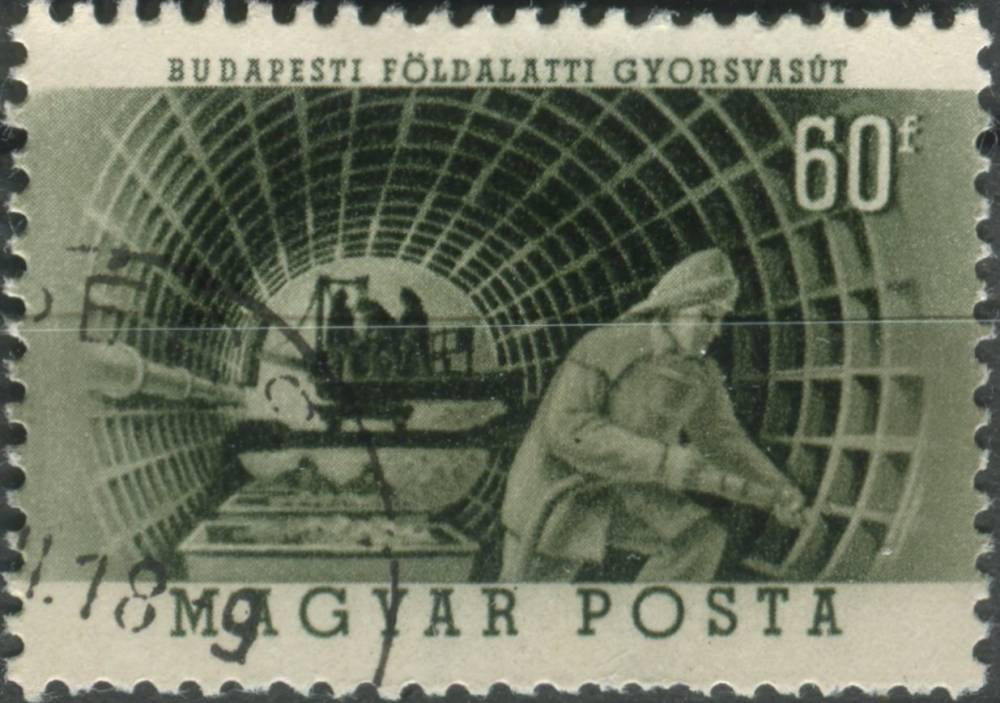 1953, Maďarsko, 1281, Zahájení stavby prodloužení Budapešťského metra: Dělníci při stavbě tunelu ⊙