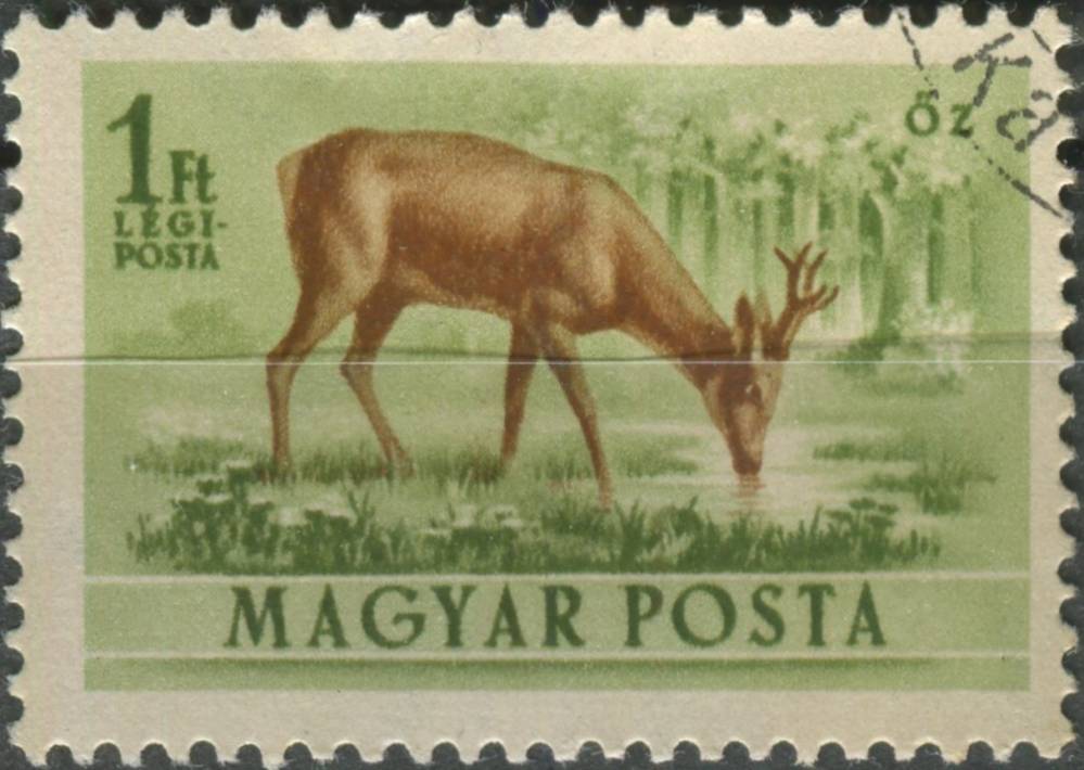 1953, Maďarsko, 1292, Letecká známka: Fauna - Capreolus capreolus ⊙