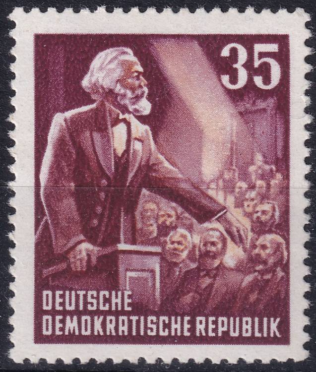 1953, NDR, 0350YI, 70. výročí úmrtí Karla Marxe: Karel Marx za řečnickým pultem ✶✶