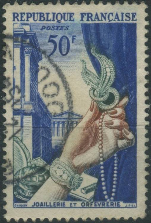 1954, Francie, 0999, Výplatní známka: Podpora exportního průmyslu - Šperkařství a zlatnictví, v pozadí Rue Royale ⊙