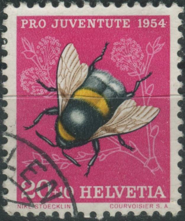 1954, Švýcarsko, 0604, "Pro Juventute": Hmyz - Bombus terrestris ⊙