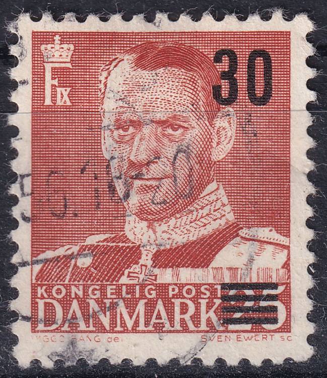 1955, Dánsko, 361, Výplatní známka: Vlnky bez srdíček a král Frederik IX. ⊙