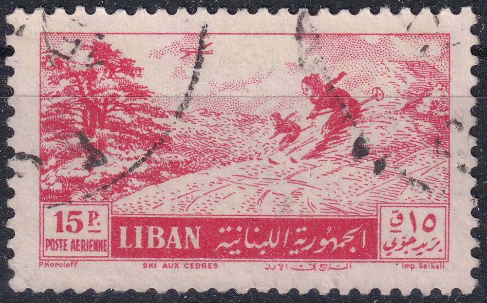 1955, Libanon, 0530, Letecká poštovní známka: Krajinky - Lyžař ⊙