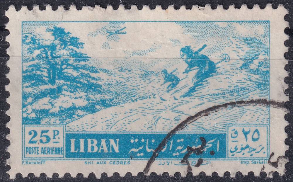 1955, Libanon, 0532, Letecká poštovní známka: Krajinky - Lyžař ⊙