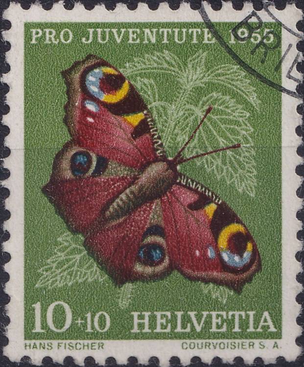 1955, Švýcarsko, 0619, "Pro Juventute": Hmyz - Inachis io ⊙