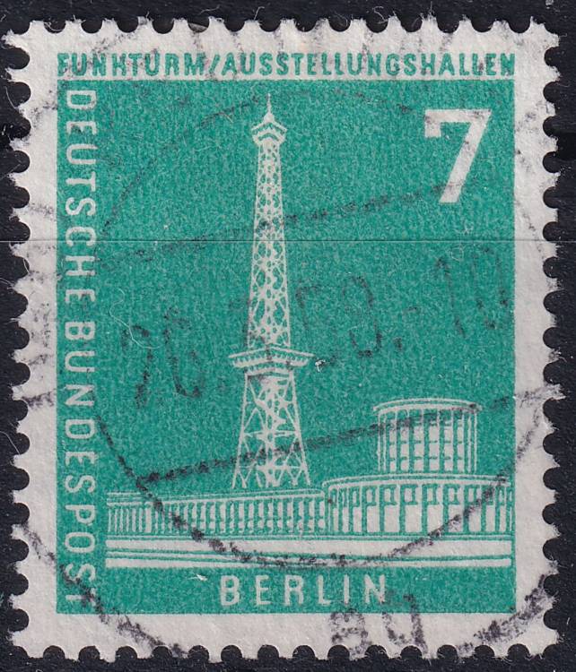 1956, Berlín, 142, Výplatní známka: Berlínské pohledy na město (II) - Rozhlasový vysílač a výstavní hala ⊙