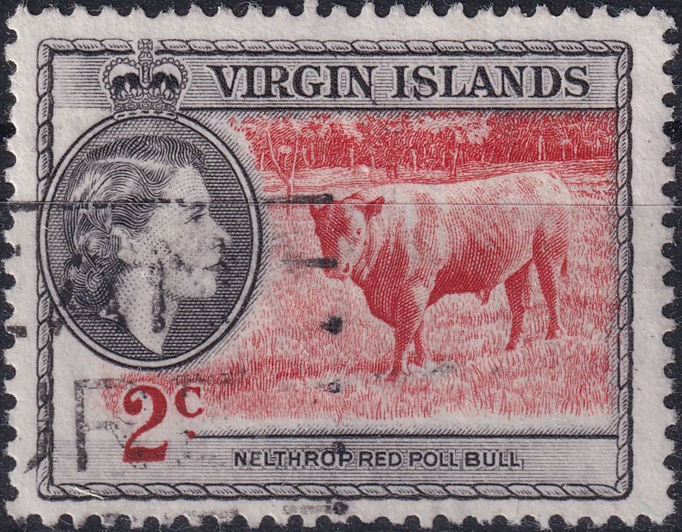 1956, Britské panenské ostrovy, 0113, Výplatní známka: Královna Alžběta II., typické zemské motivy ⊙
