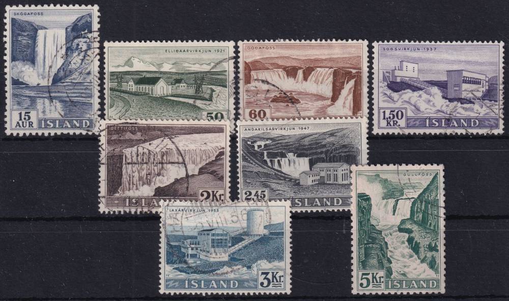 1956, Island, 0303/0310, Výplatní známky: Elektrárny a vodopády ⊙