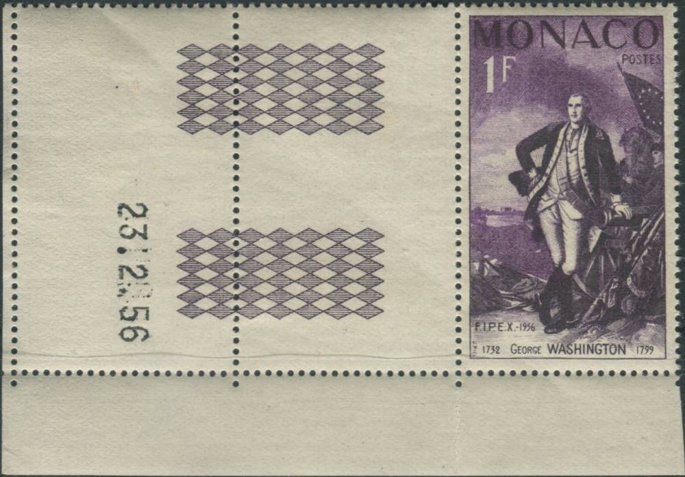 1956, Monako, 0527dKL, Mezinárodní výstava poštovních známek FIPEX v New Yorku - George Washington ∗∗ L D