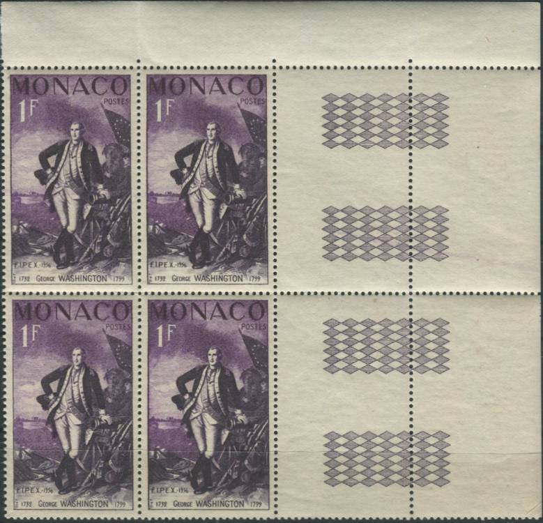 1956, Monako, 0527KP, Mezinárodní výstava poštovních známek FIPEX v New Yorku: George Washington ∗∗ ⊞ P H