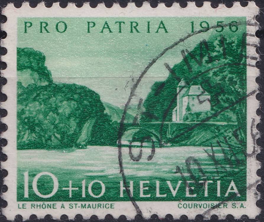 1956, Švýcarsko, 0628, "Pro Patria": Jezera a vodní toky - Rhone u St.-Maurice ⊙