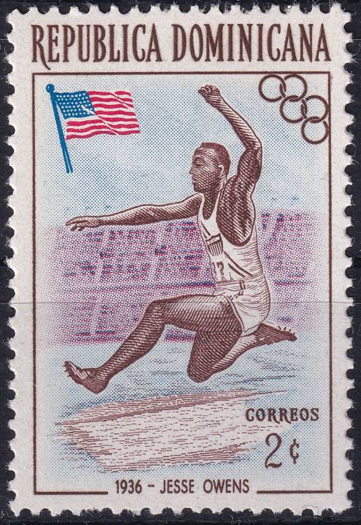 1957, Dominikánská republika, 0561A, Letní olympijské hry 1956, Melbourne (I): Dřívější olympijší vítězové - Jesse Owens, USA (1936) ✶✶