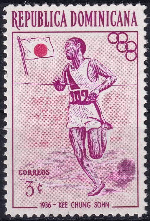 1957, Dominikánská republika, 0562A, Letní olympijské hry 1956, Melbourne (I): Dřívější olympijší vítězové - Sohn Kee-chung, Korea (1936) ✶✶