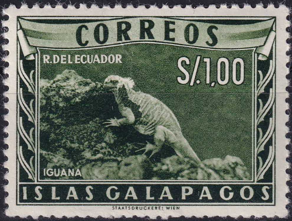 1957, Ekvádor-Galapágy, 3, Výplatní známka: Zemské obrázky - Ambylrhynchus subcristatus ✶✶