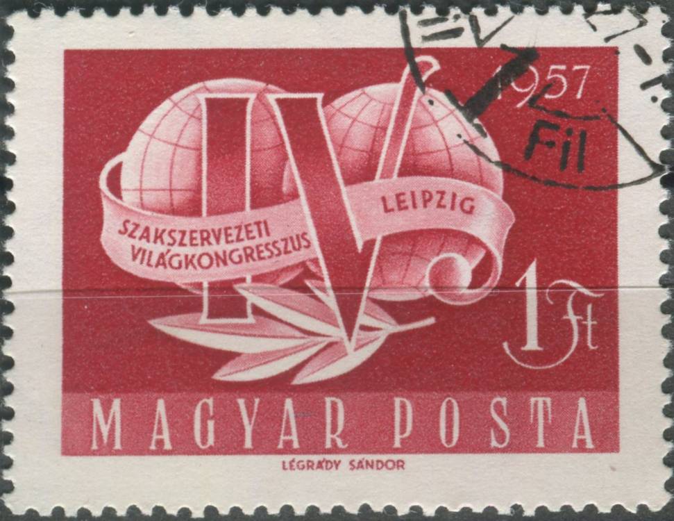 1957, Maďarsko, 1500A, 4. Světový odborový sjezd, Lipsko ⊙