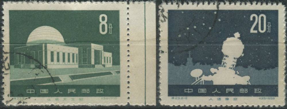 1958, Čína, 0386/0387, Geofyzikální rok: Obrazy z planetária v Pekingu ⊙