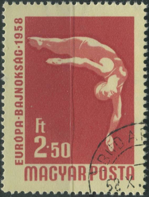 1958, Maďarsko, 1547A, Mistrovství Evropy a světa v různých sportovních odvětví v Budapešti - Skoky do vody ⊙