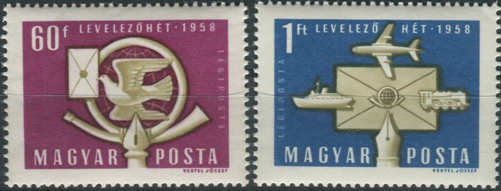 1958, Maďarsko, 1555/1556A, Letecké známky: Mezinárodní týden dopisu ∗∗