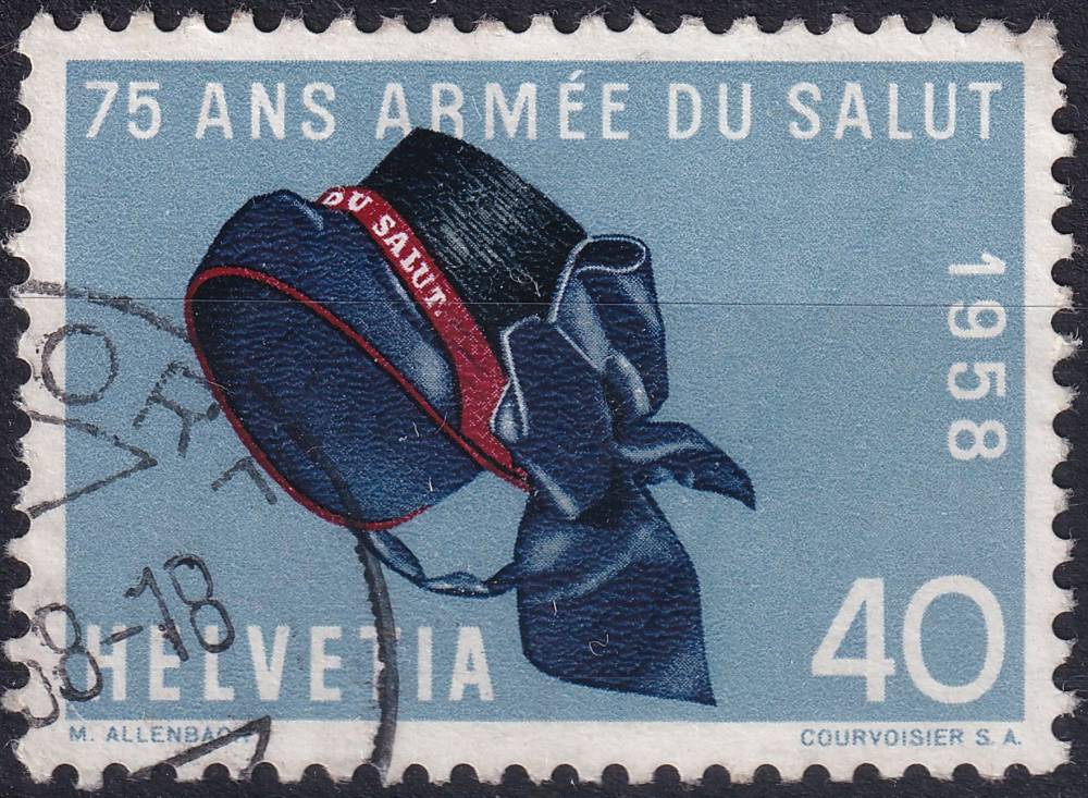 1958, Švýcarsko, 0656, Výročí: 75 let Armády spásy ve Švýcarsku - Klobouk Armády spásy ⊙