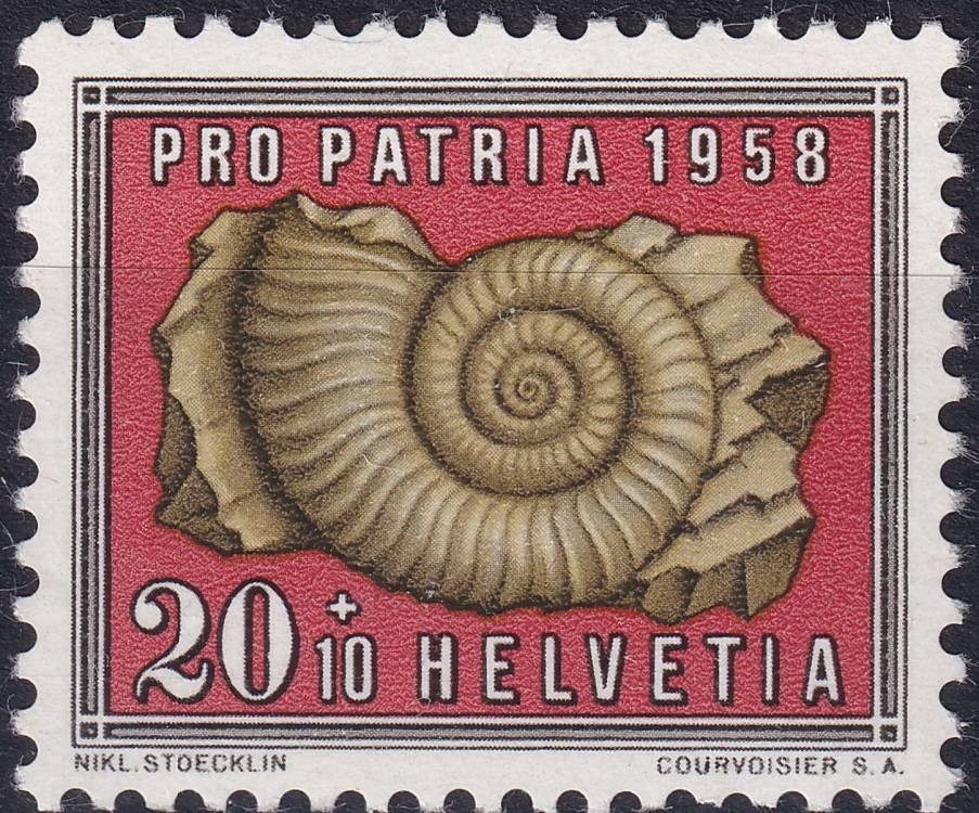 1958, Švýcarsko, 0659, "Pro Patria": Minerály a zkameněliny - Amonit; Zkamenělina ✶✶