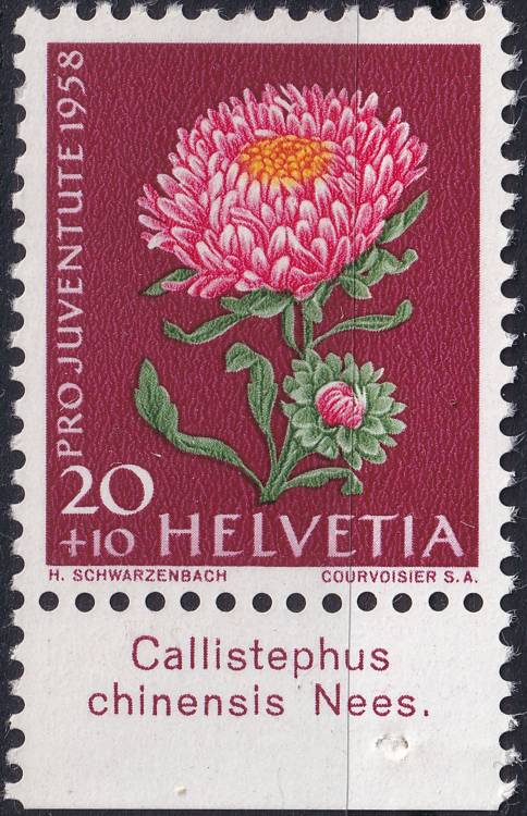 1958, Švýcarsko, 0665, "Pro Juventute": Luční a zahradní květiny - Callistephus chinensis ✶✶ o D