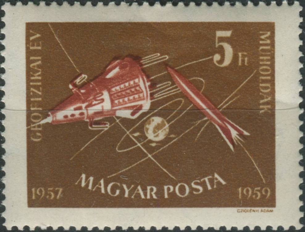 1959, Maďarsko, 1577A, Mezinárodní Geofyzikální rok: Sovětský Sputnik a americká raketa Vanguard ∗∗