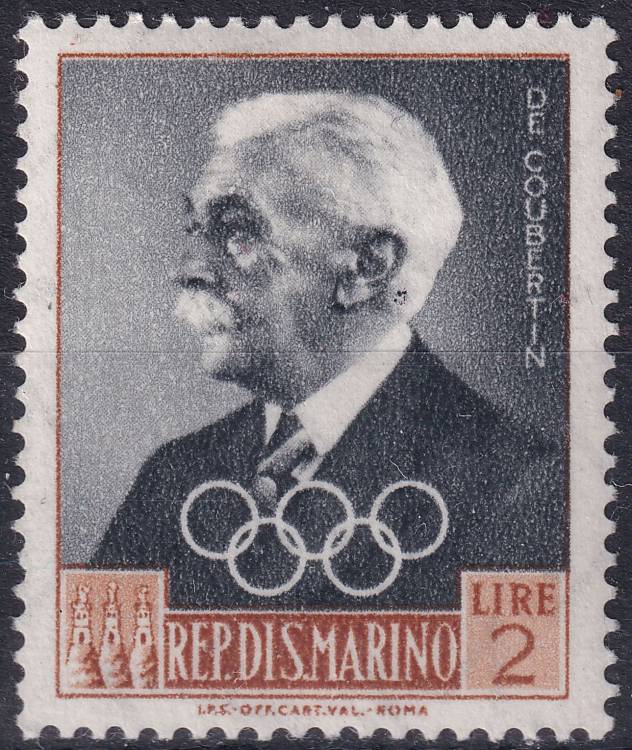 1959, San Marino, 0611, Funkcionáři Mezinírodního olympijského výboru (IOC) (I): Pierre Baron de Coubertin ✶