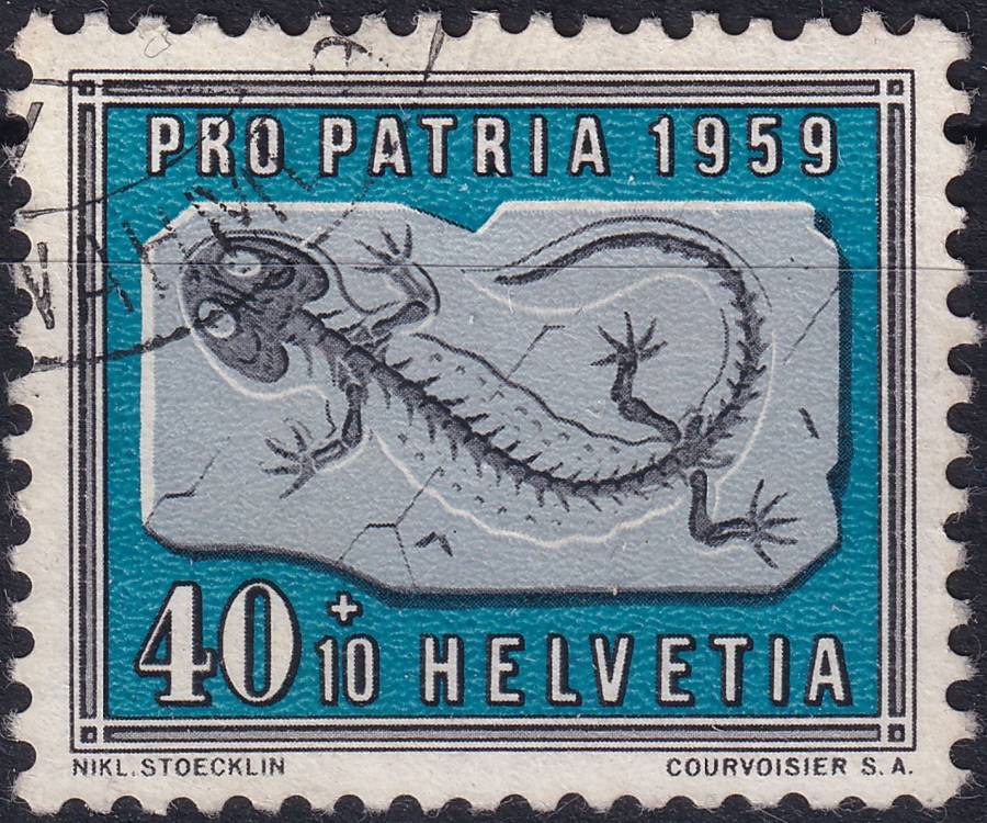1959, Švýcarsko, 0678, "Pro Patria": Minerály a zkameněliny - Andrias japonicus; zkamenělina ⊙