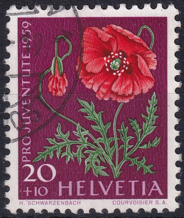 1959, Švýcarsko, 0689, "Pro Juventute": Luční a zahradní květiny - Papaver rhoeas ⊙
