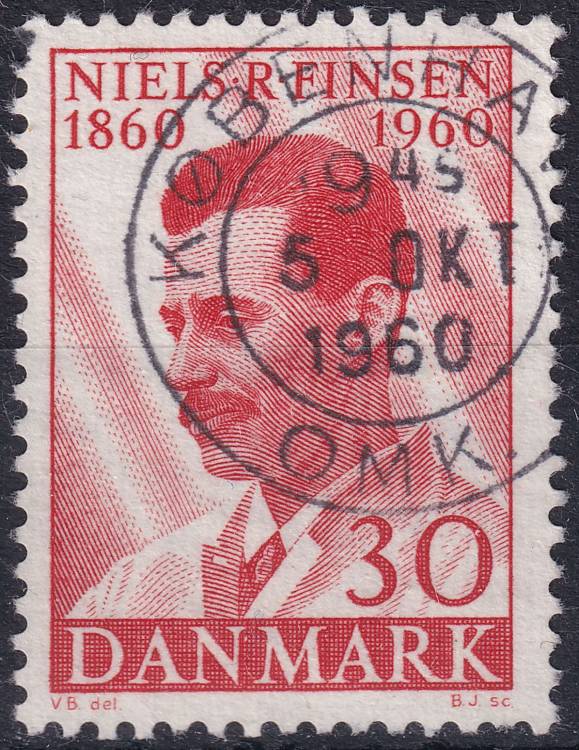 1960, Dánsko, 0384, 100. výročí narození Nielse Ryberga Finsena ⊙