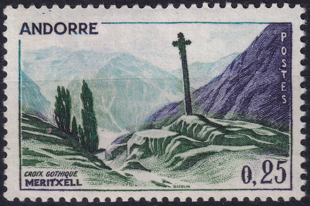 1961, Andorra (Francouzská pošta), 0168, Výplatní známka: Krajinky - Gotický kříž u Maritxellu ✶