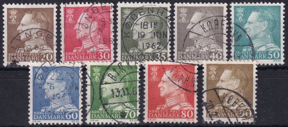 1961, Dánsko, 0390/0398x, Výplatní známky: Král Frederik IX. ⊙