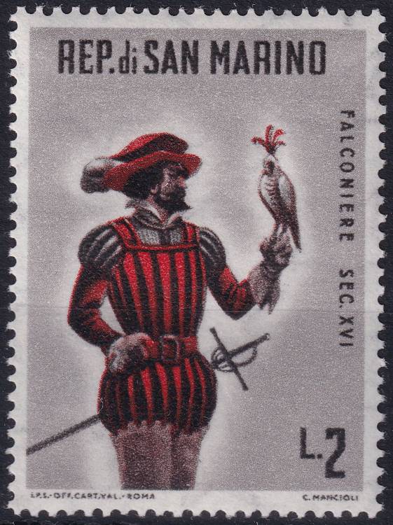 1961, San Marino, 0687, Lov a hon v 18. - 19. století: Sokolník se sokolem ✶✶