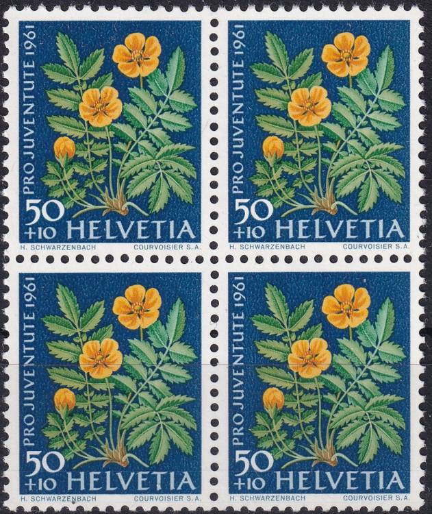 1961, Švýcarsko, 0746, "Pro Juventute": Luční a zahradní květiny - Potentilla anserina ✶✶ ⊞