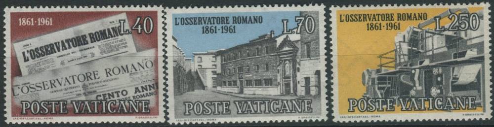 1961, Vatikán, 0375/0377, 100 let novin "L´Osservatore Romano" ∗∗