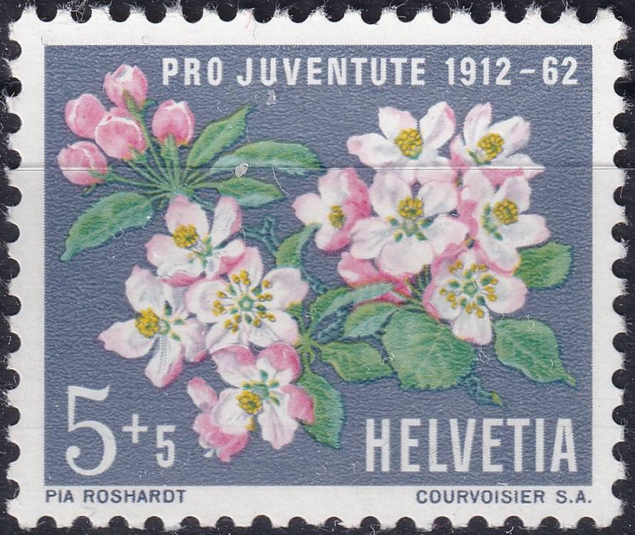1962, Švýcarsko, 0758, "Pro Juventute": 50 let nadace Pro Juventute - Malus sylvestris var. domestica-Rosaceae ✶✶